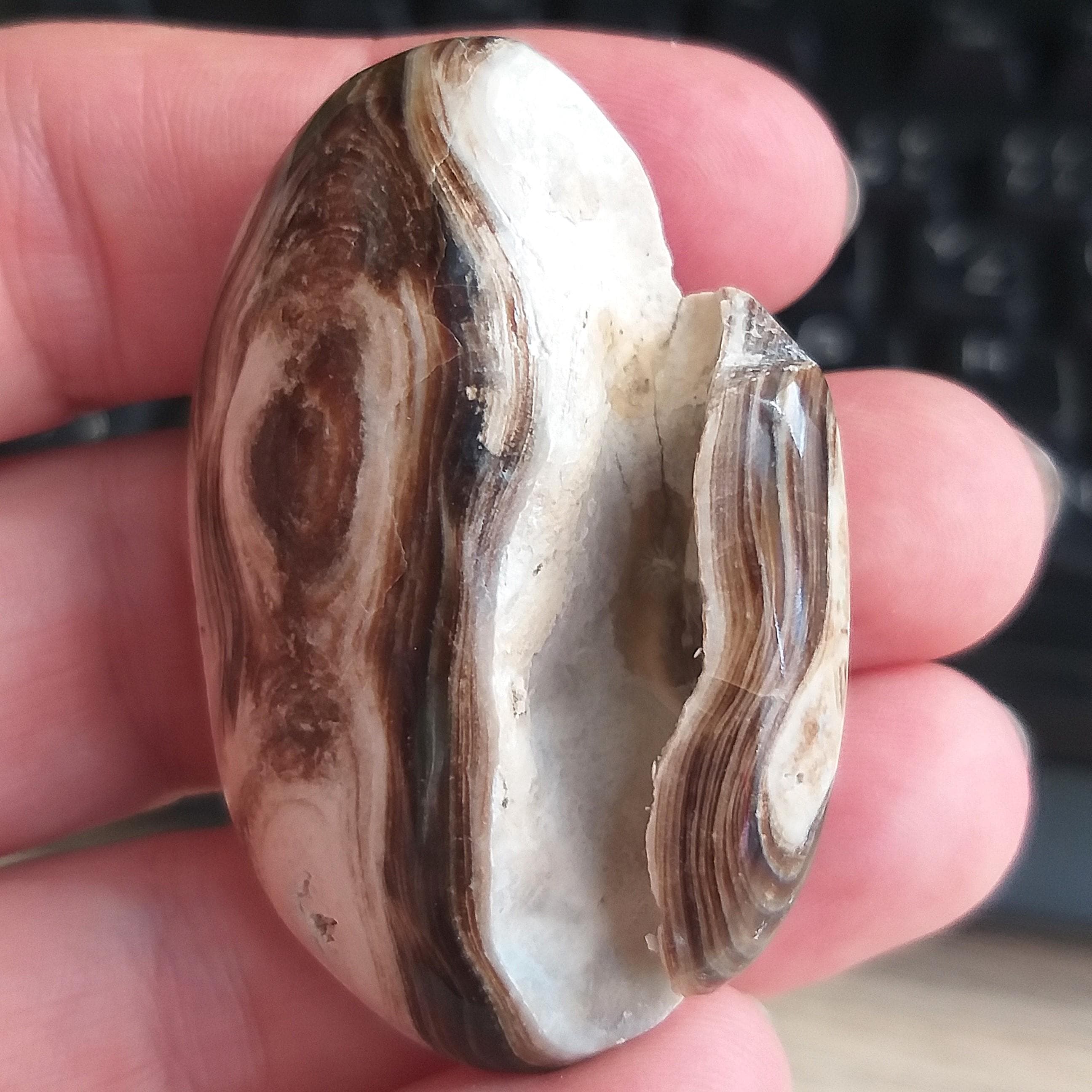 🤎 The Palm Stone Smooth and soothing, ideal for meditation or display. Its layered pattern evokes ancient landscapes and quiet strength.
