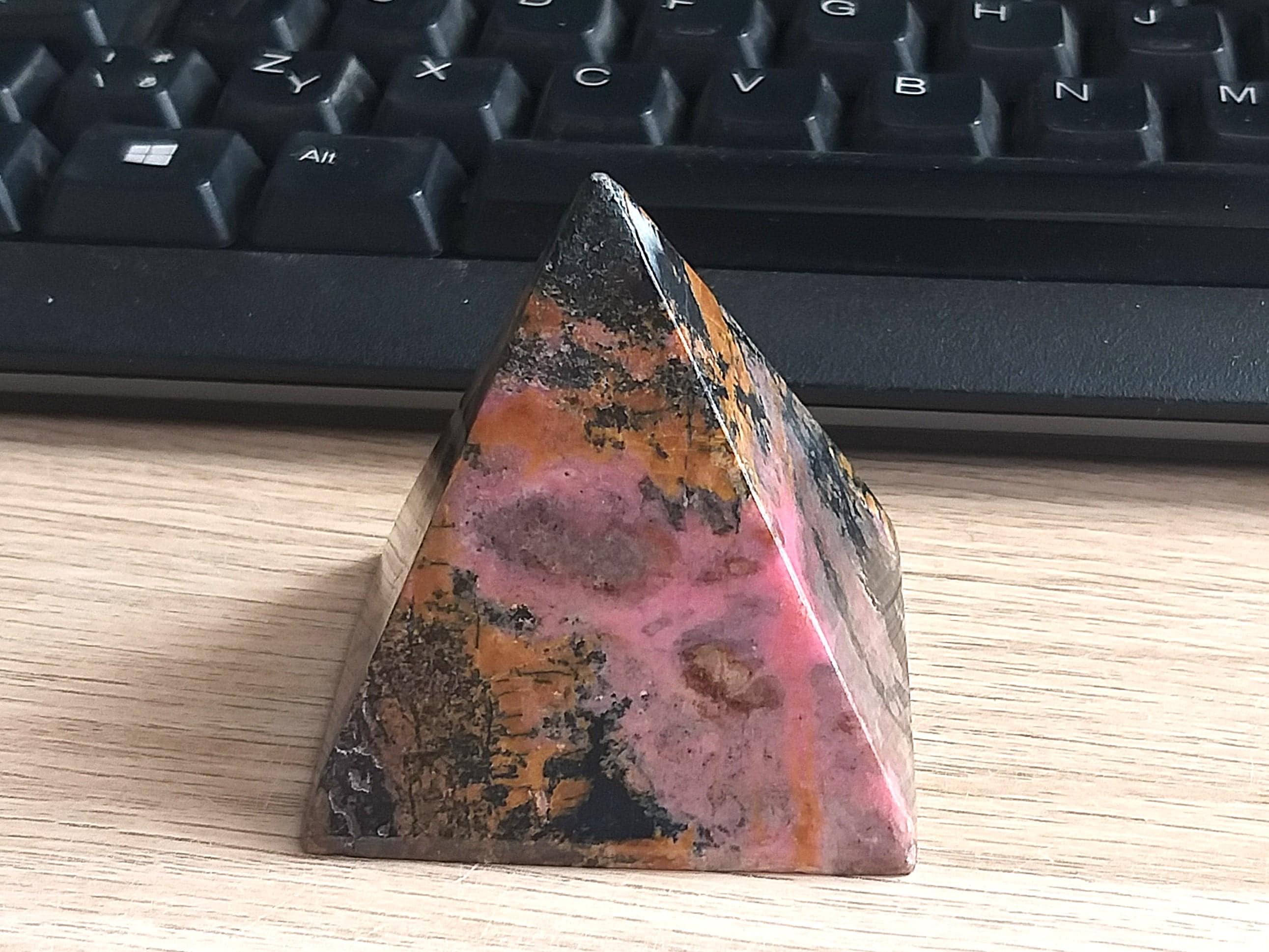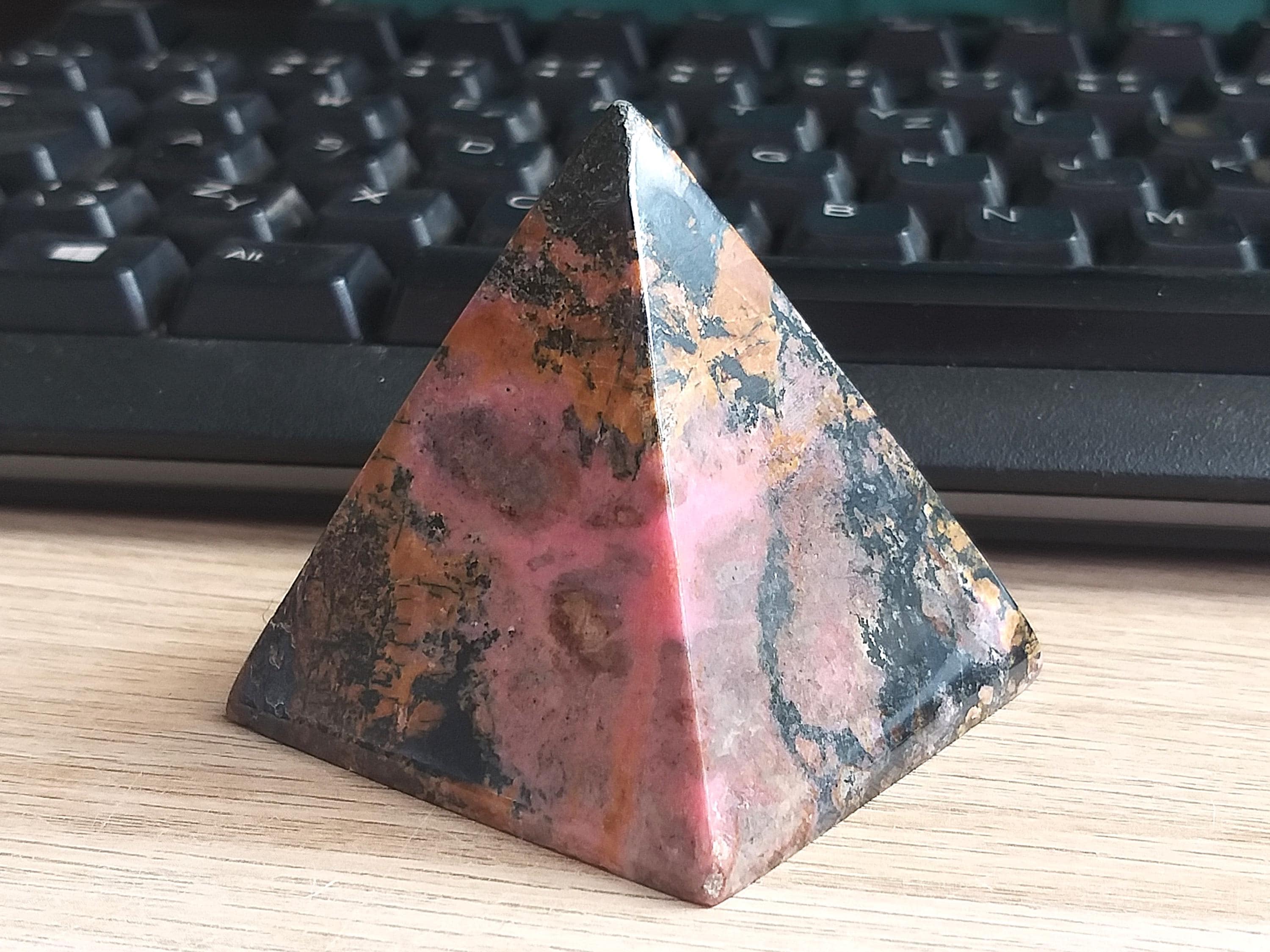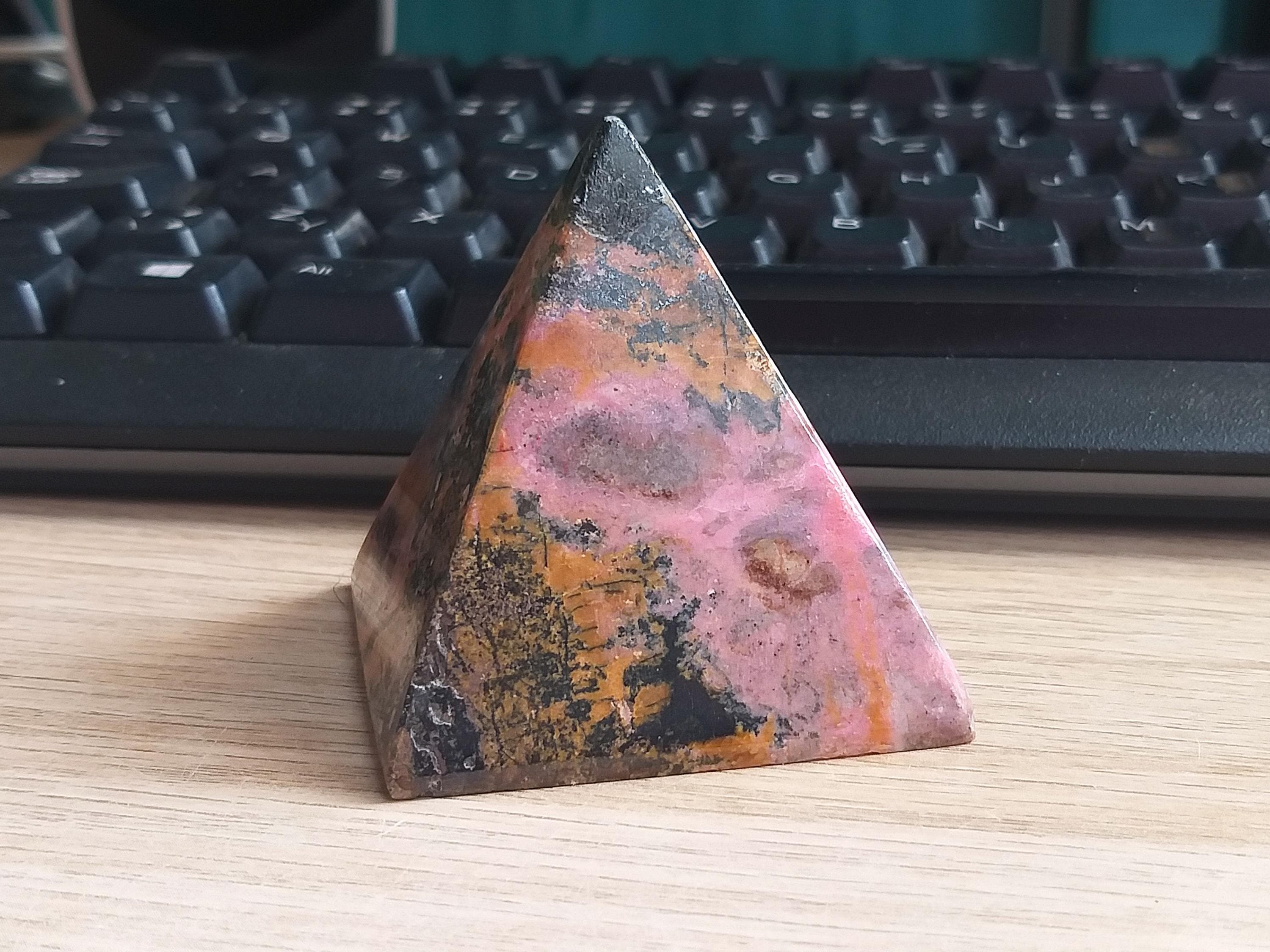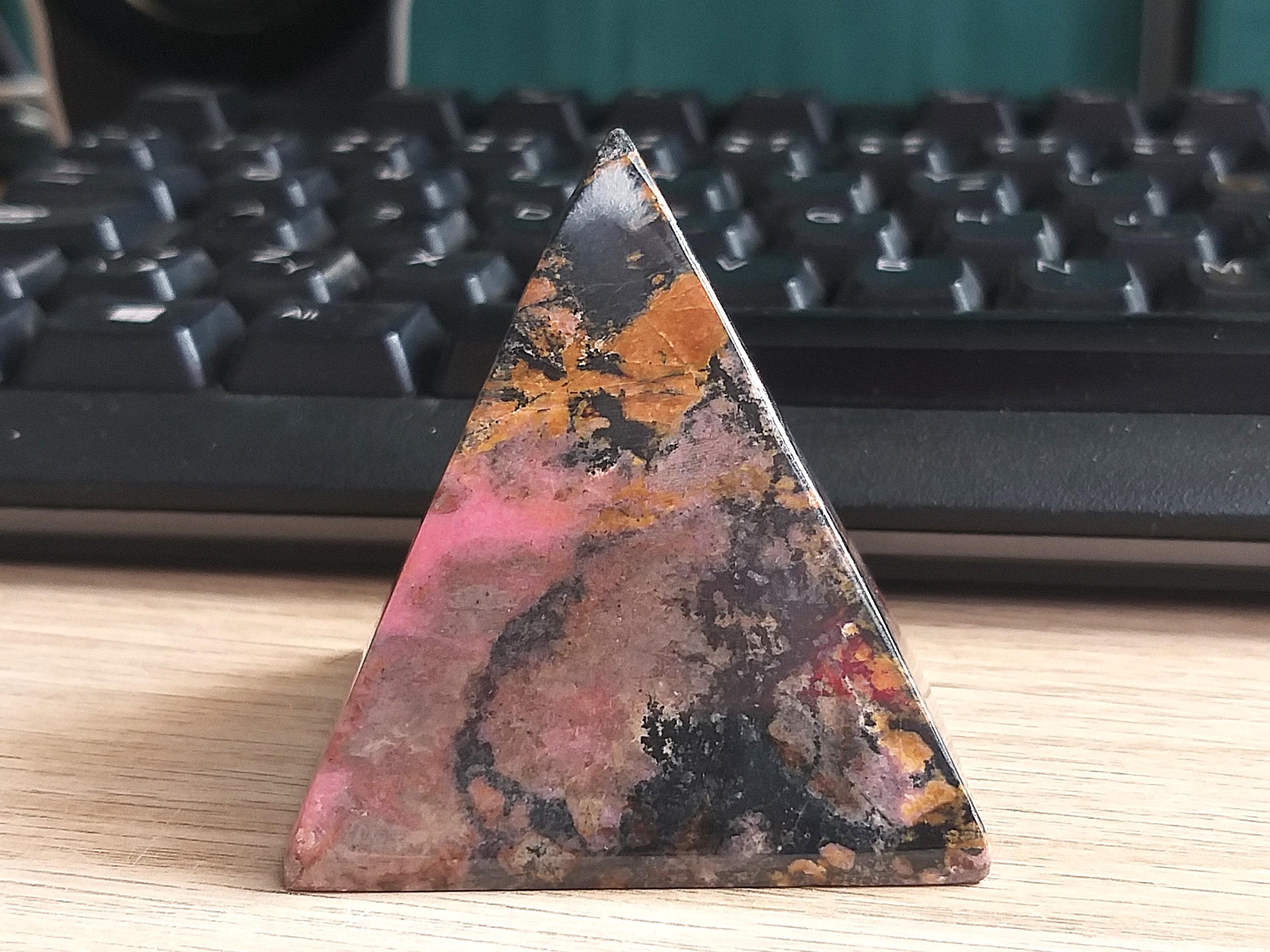 A pyramid of pink and black—bold, dynamic, and deeply healing.